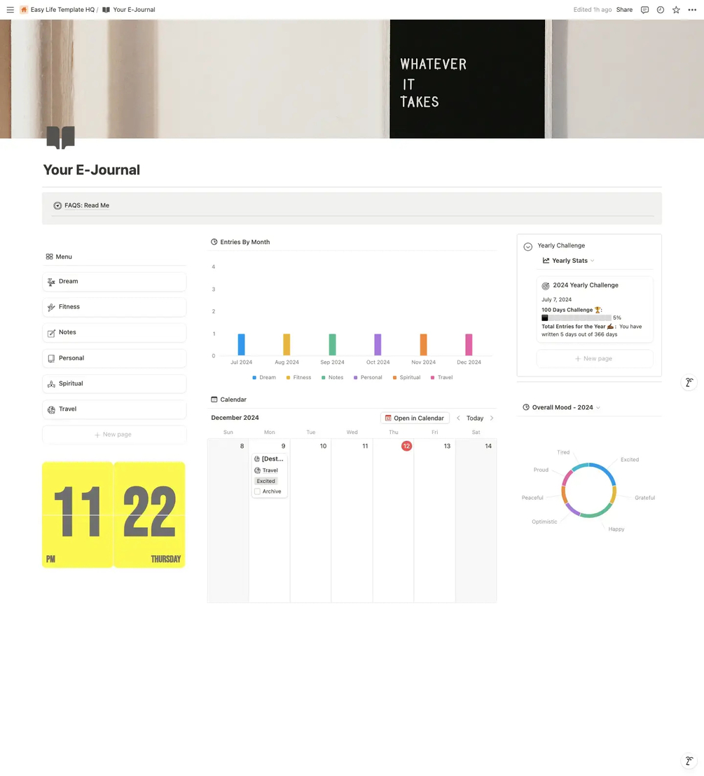 The E-Journal Template is your ultimate tool for self-reflection, growth, and organization. Designed for ease and functionality, this Notion template helps you track your progress, capture your thoughts, and achieve your personal goals effortlessly.